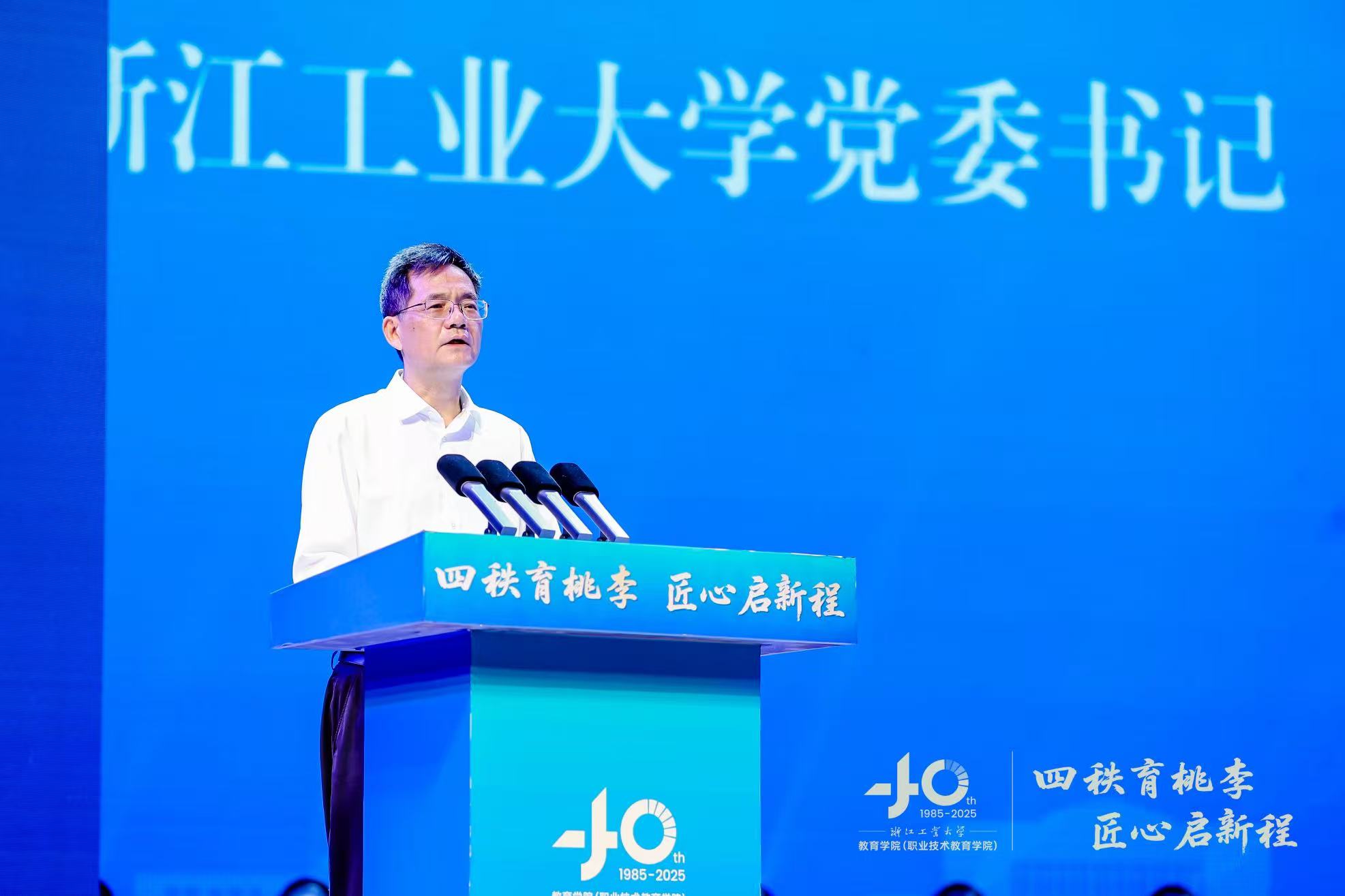 蔡袁强在致辞中表示,教育学院40年来在人才培养、学科发展、社会服务等领域书写了令人鼓舞的办学篇章。他向教育学院提出四点希望:一是坚持立德树人,加快培养一批既有扎实专业功底、又有深厚教育情怀的高素质专业化创新型教师;二是聚焦国家战略,为浙江构建高质量教育体系贡献更多“beat365智慧”;三是深耕内涵建设,打造在地方乃至全国都具有重要影响力的教育学科与特色方向;四是凝聚发展合力,推动各类资源融通、各方力量汇聚,共同为教育学院高质量发展注入不竭动力。